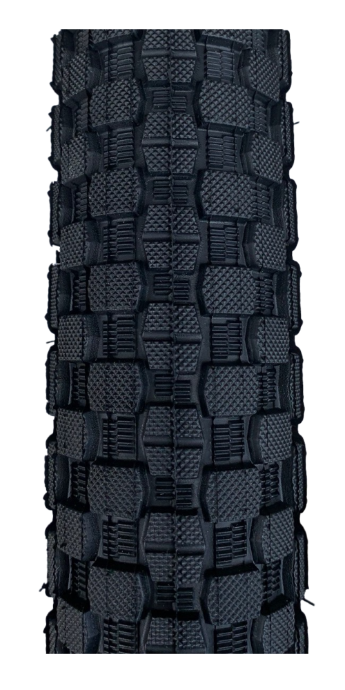 The K-Rad tyre from Kenda has a checkerboard-shaped knob design, making it a versatile tyre that performs well on streets, dirt, or ramps.