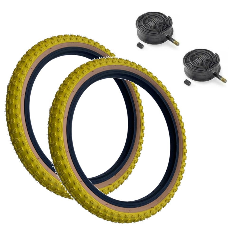 Baldys 16 x 1.75 YELLOW With TAN WALL Kids BMX Mountain Bike TYRE s TUBE s