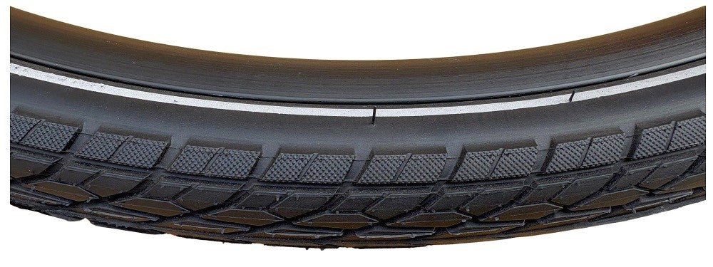 A reflective tape across sidewalls provides better night time visibility and safety.