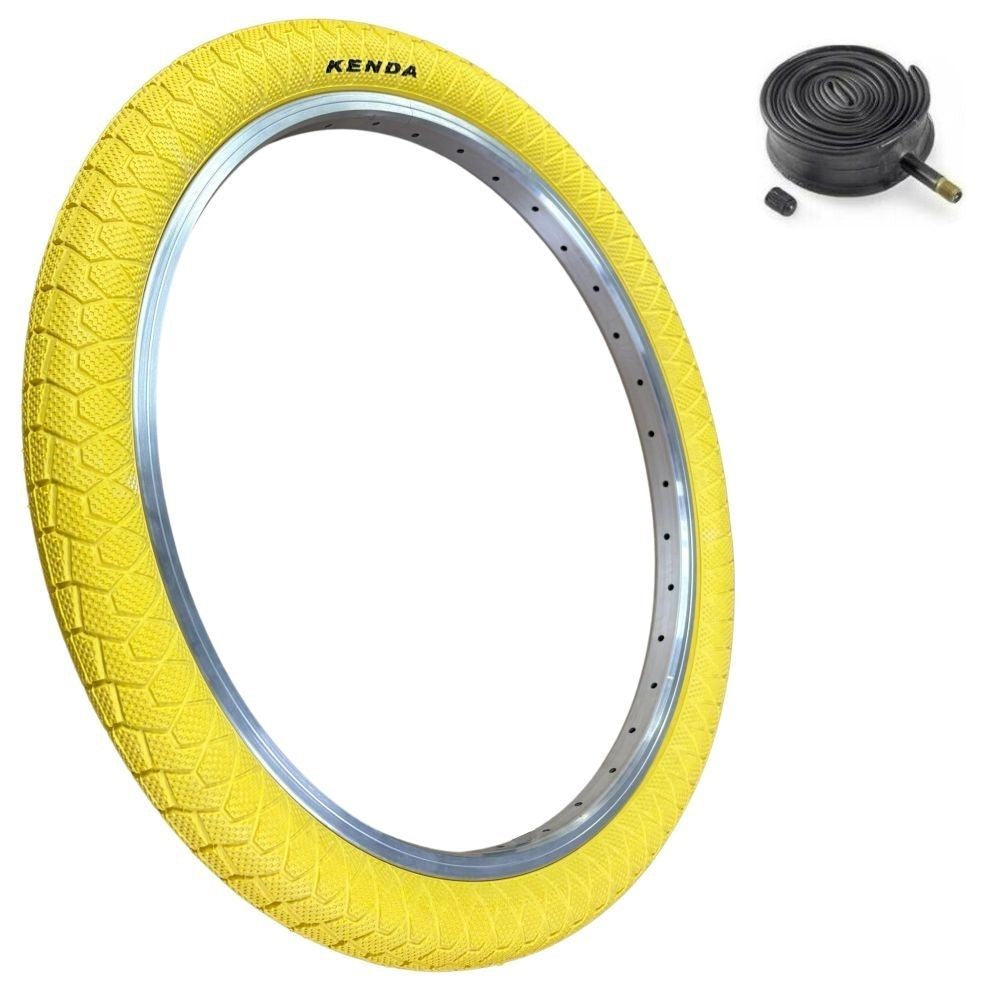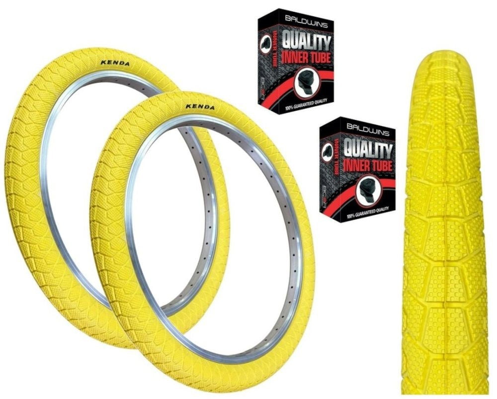 KENDA KRACKPOT 20 x 1.95 YELLOW Kids BMX Bike Freestyle Street TYREs TUBEs K-90