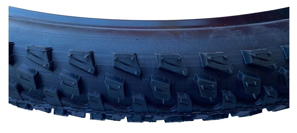 On the central rib it rolls easily over hard paths, while the strong outer lugs give it great off-road traction.