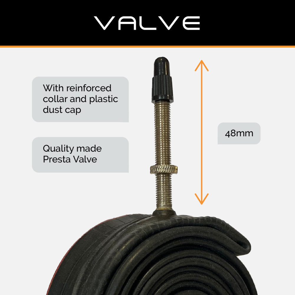 - 48mm long x 6mm diameter (approx) quality precision made presta / french valve with reinforced collar