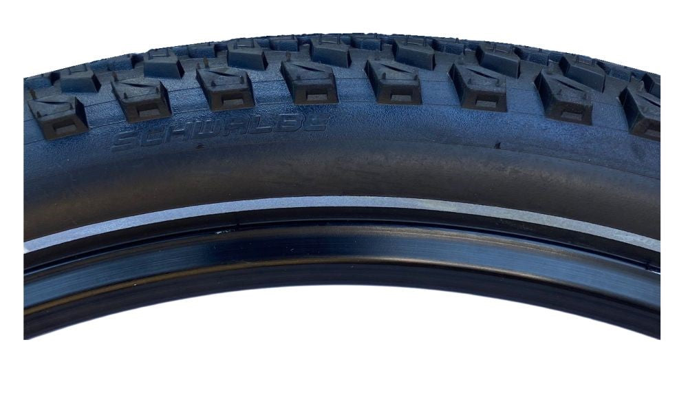 Use a pressure gauge to adjust tyre pressures as the common ‘thumb check’ is insufficient due to the special construction of the Marathon Plus MTB.