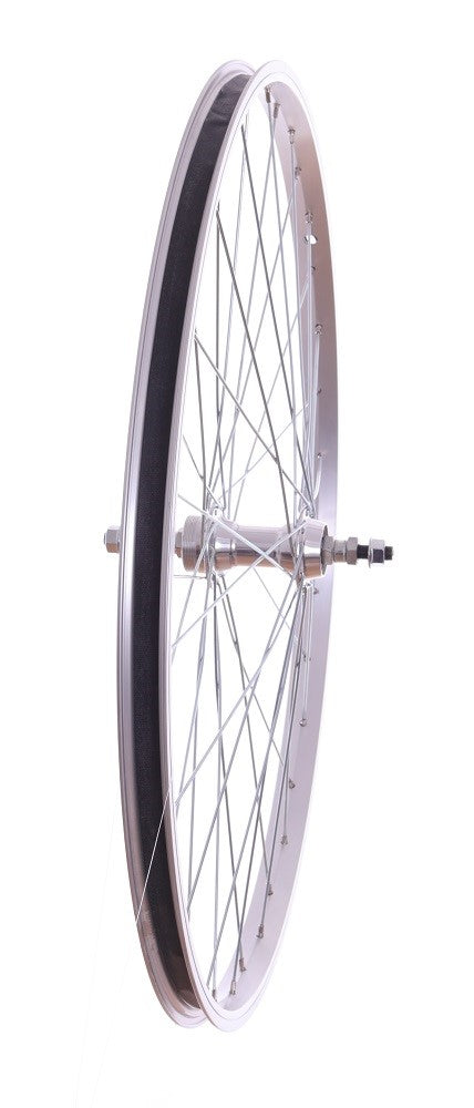 Rim: 700c Alloy hybrid bike Silver rim - 26mm wide, 638mm O/A diameter