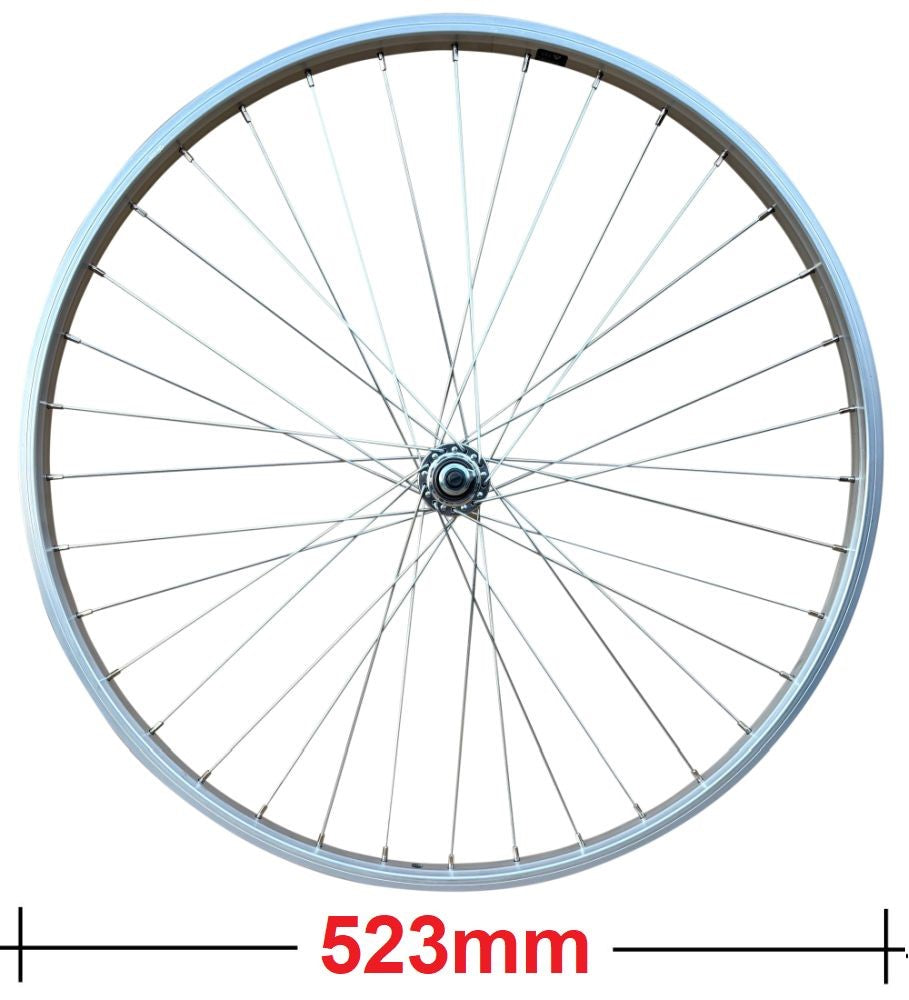 Our 24" front mountain bike wheel is constructed with Mach1 silver alloy rim, silky smooth sealed bearing hub with nutted axle and silver steel spokes.