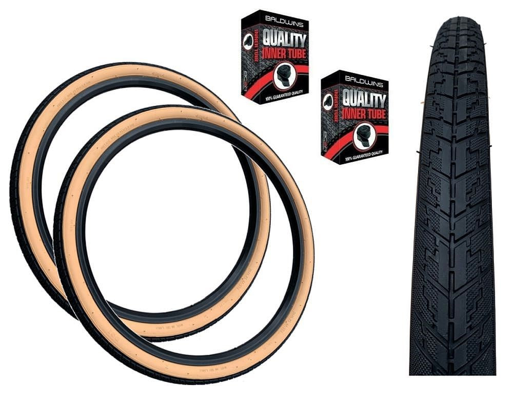 Baldys 26 x 1.75 Tan Amber Wall Road Slick Mountain MTB Bike TYREs TUBEs