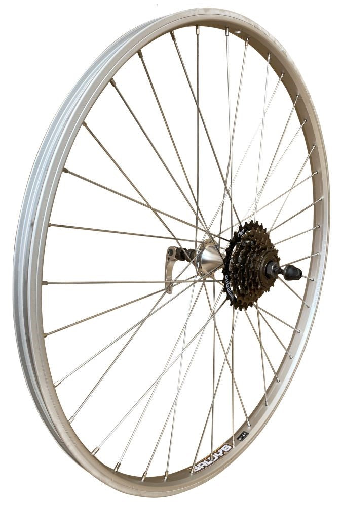 Baldys 26" Rear Silver Mountain Bike Wheel 6 Speed Quick Release Alloy Hub
